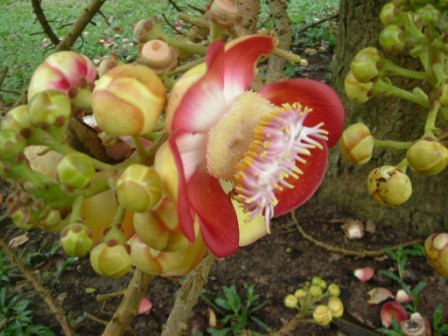 heerlijk om te wandelen. Er zitten families op het gras met elkaar te eten en te kletsen. We zien de bekende Cannon Balls en de bloemen daarvan. Ook wij