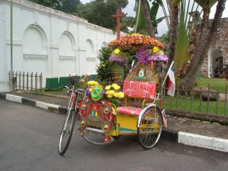 zijn met scheepsladingen vanuit Nederland aangevoerd. Overal in Melaka zien we moderne Riksja’s. De een nog bonter dan de ander. We liggen helemaal in een